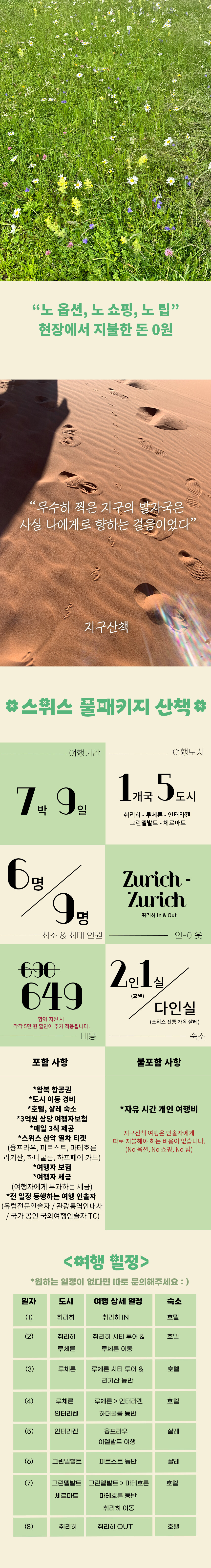 [지구산책 풀패키지] 내 인생 단 한번 스위스 로드트립 🚘🇨🇭